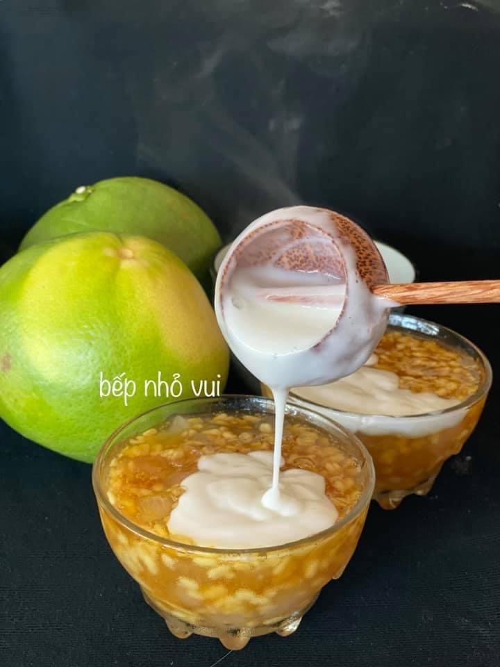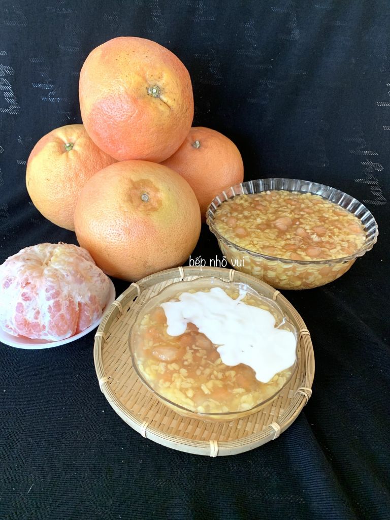 - 2 trái bưởi nhỏ(loại bưởi nào cũng được,dày cùi là ngon) lựa trái nhẹ tay thì được cùi bưởi nhiều.